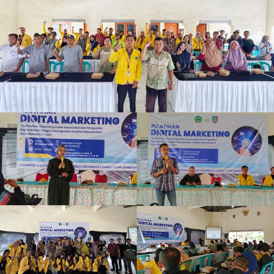 Grogol, 20 Februari 2025 – Kuliah Kerja Mahasiswa (KKM) H sukses menggelar salah satu program kerja utamanya, yakni Pelatihan Digital, yang bertujuan untuk membantu pelaku Usaha Mikro, Kecil, dan Menengah (UMKM) dalam memanfaatkan teknologi digital guna meningkatkan pemasaran dan daya saing bisnis mereka. Kegiatan ini berlangsung di Balai Desa Grogol, Kecamatan Diwek, Kabupaten Jombang, dan mendapat sambutan antusias dari para peserta.